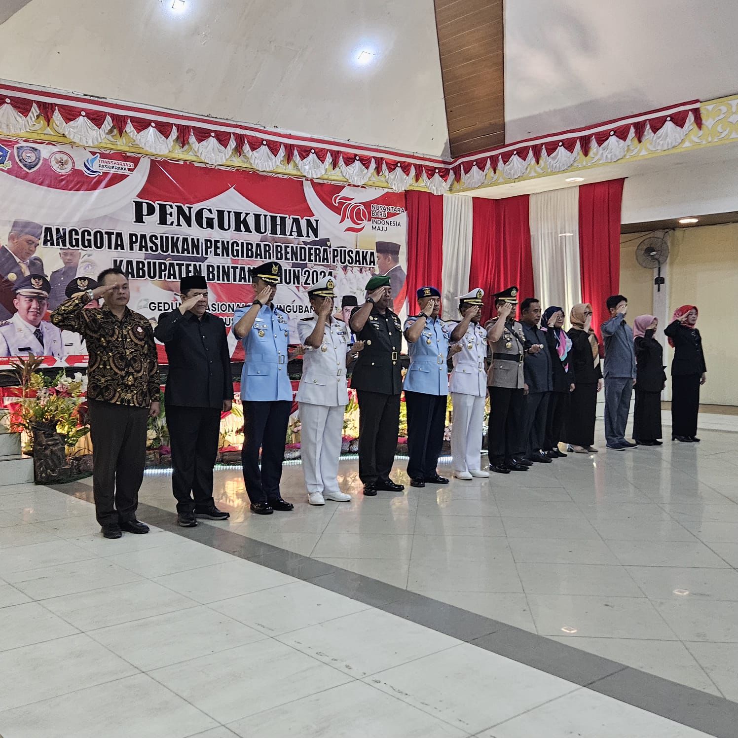 Komandan Lanal Bintan Letkol Laut (P) Eko Agus Eko, S.E., M.M., beserta jajaran Forkopimda Bintan hadir mendampingi Wakil Bupati Bintan Ahdi Muqsith, S.I.P., pada acara pengukuhan siswa-siswa terpilih yang tergabung pasukan Paskibraka di Bintan Tahun 2024. Selama proses pelatihan mereka mendapat pelatihan khusus dari personel Satuan TNI dan Polri di Bintan.