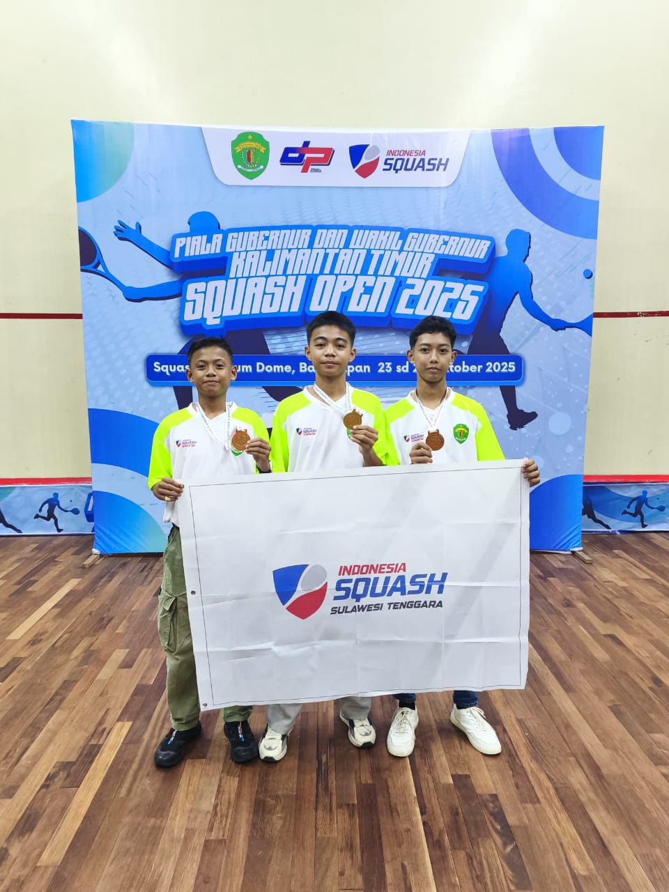 3 PUTRA DAERAH SULAWESI TENGGARA MENGIKUTI AJANG PERLOMBAAN PIALA GUBERNUR DAN WAKIL GUBERNUR KALIMANTAN TIMUR SQUASH OPEN 2025