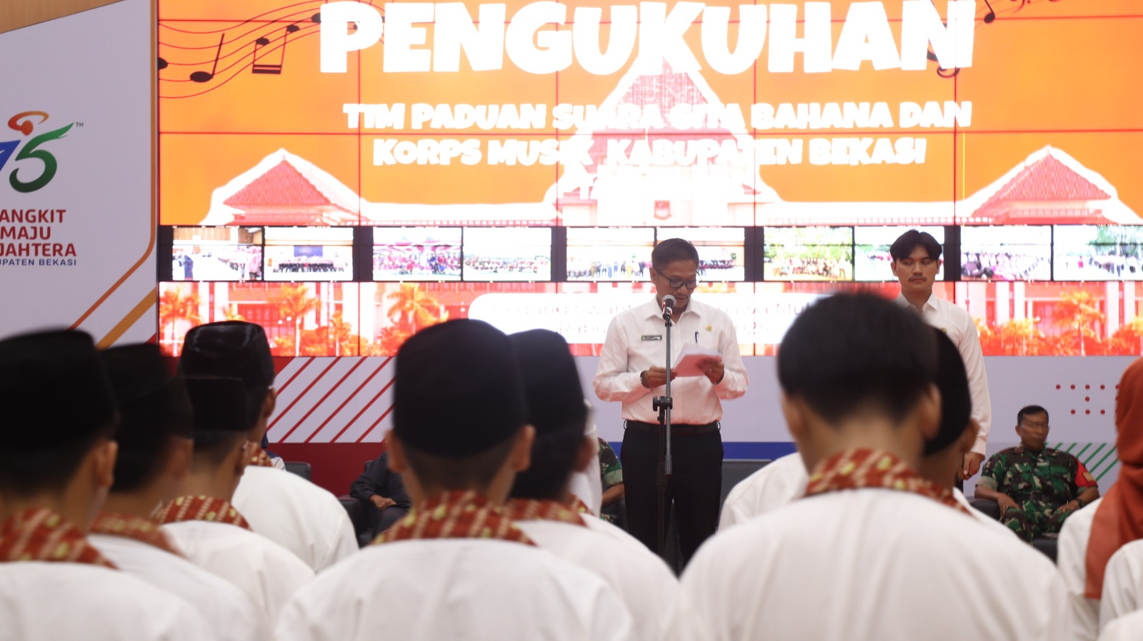 Sebanyak 65 anggota Tim Paduan Suara Gita Bahana dan 44 anggota Korps Musik (Korsik) Kabupaten Bekasi resmi dikukuhkan oleh Pemerintah Kabupaten Bekasi melalui Dinas Budaya, Pemuda, dan Olahraga (Disbudpora) pada Rabu (13/8/2025). Acara pengukuhan digelar di Gedung Wibawa Mukti, Komplek Pemkab Bekasi, Kecamatan Cikarang Pusat.
