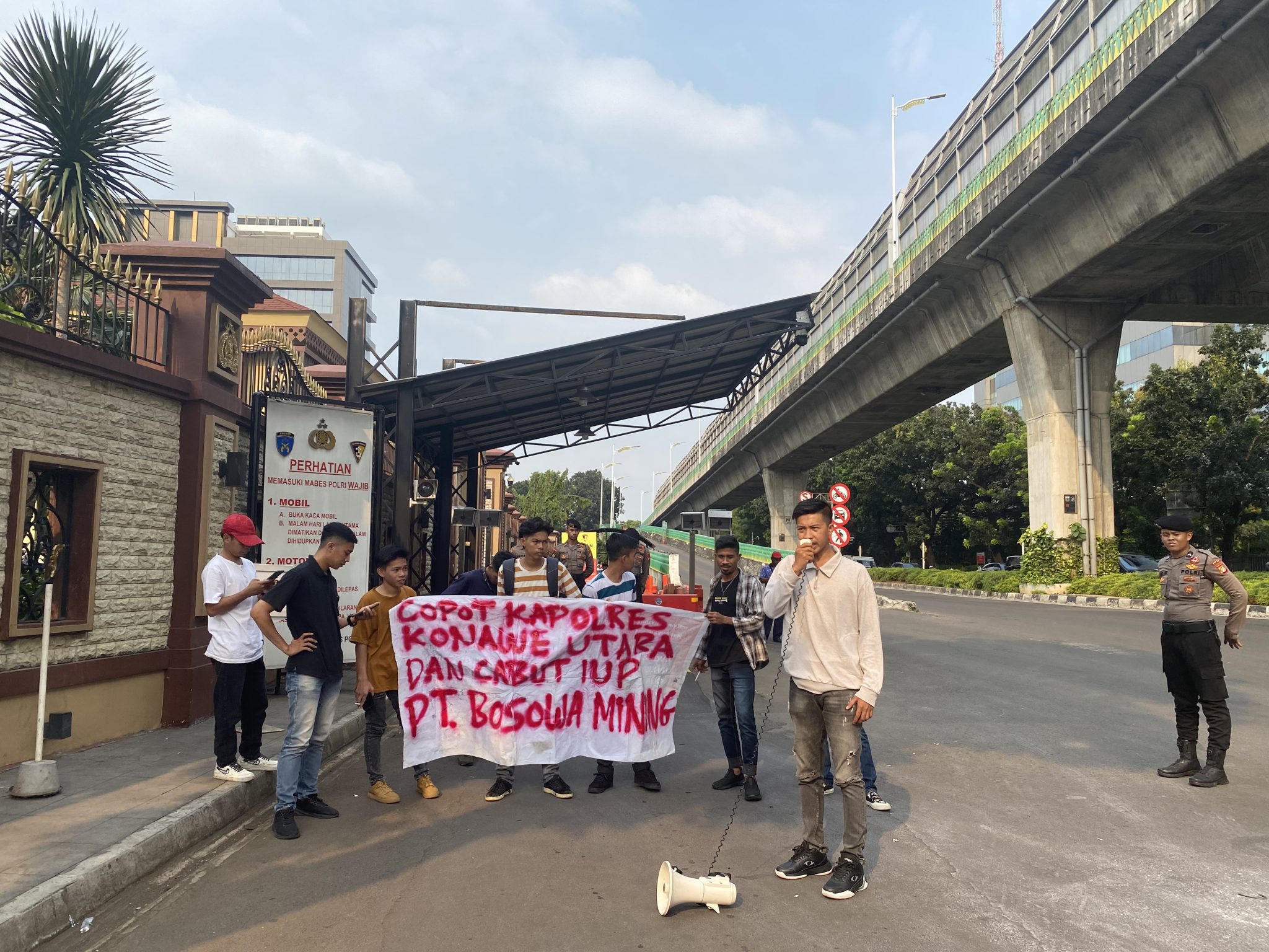 Jakarta, [30/04/25]– Gelombang protes dari puluhan massa yang tergabung dalam konsorsium pemuda mahasiswa Konawe Utara – jakarta kembali pecah hari ini. Massa menggelar aksi unjuk rasa di depan kantor dirjen minerba dan mabes polri dengan tuntutan utama: mencabut izin usaha pertambangan (IUP) PT. Bosowa Mining serta mendesak pencopotan Kapolres Konawe Utara.
