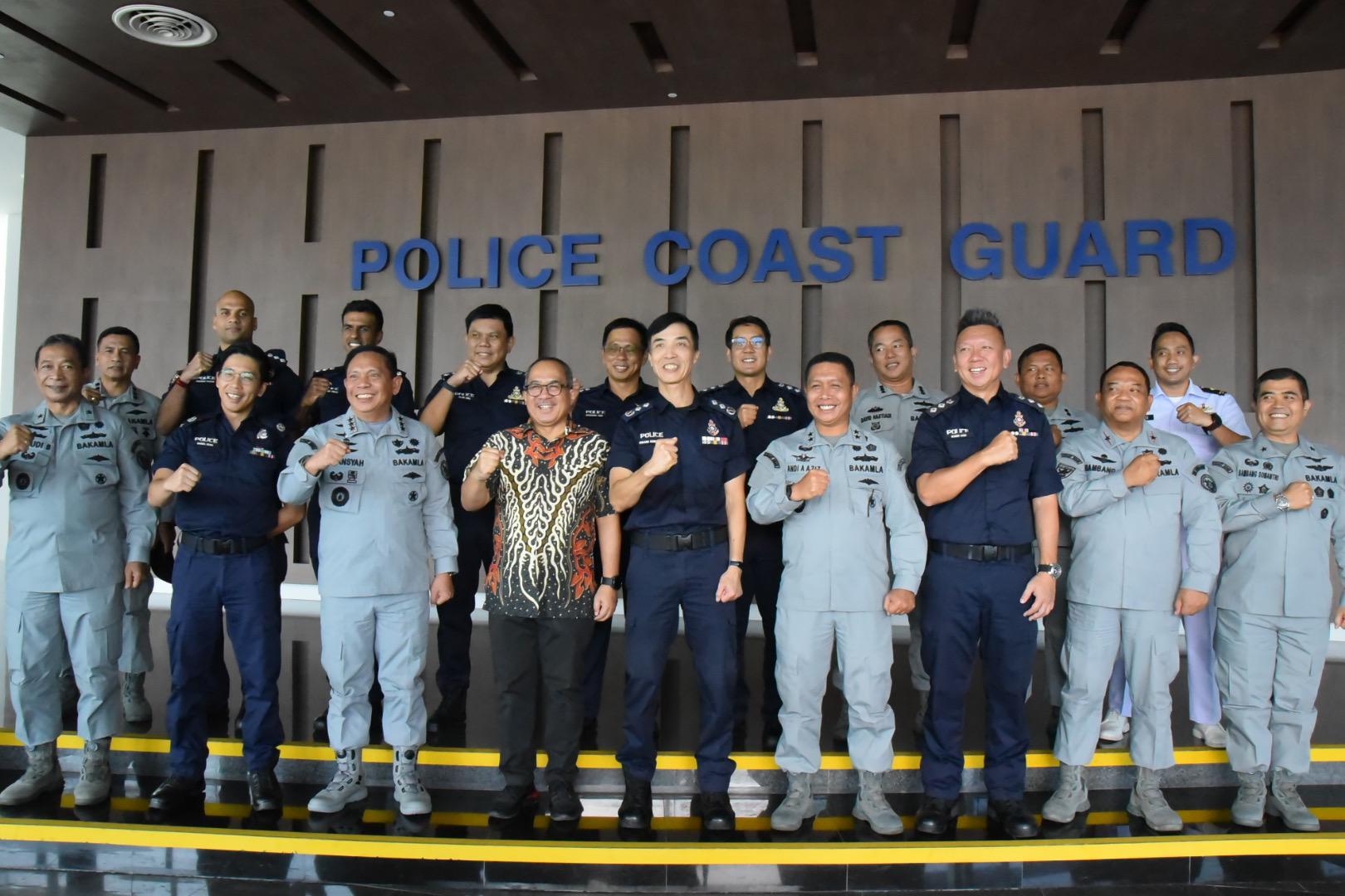 Singapura — Kepala Bakamla RI Laksdya TNI Dr. Irvansyah, S.H., M.Tr.Ospla., melaksanakan Courtesy Call dengan Komandan Singapore Police Coast Guard (SPCG) SAC Cheang Keng Keong, di Kantor Pusat SPCG, Singapura, Senin (14/10/2024).