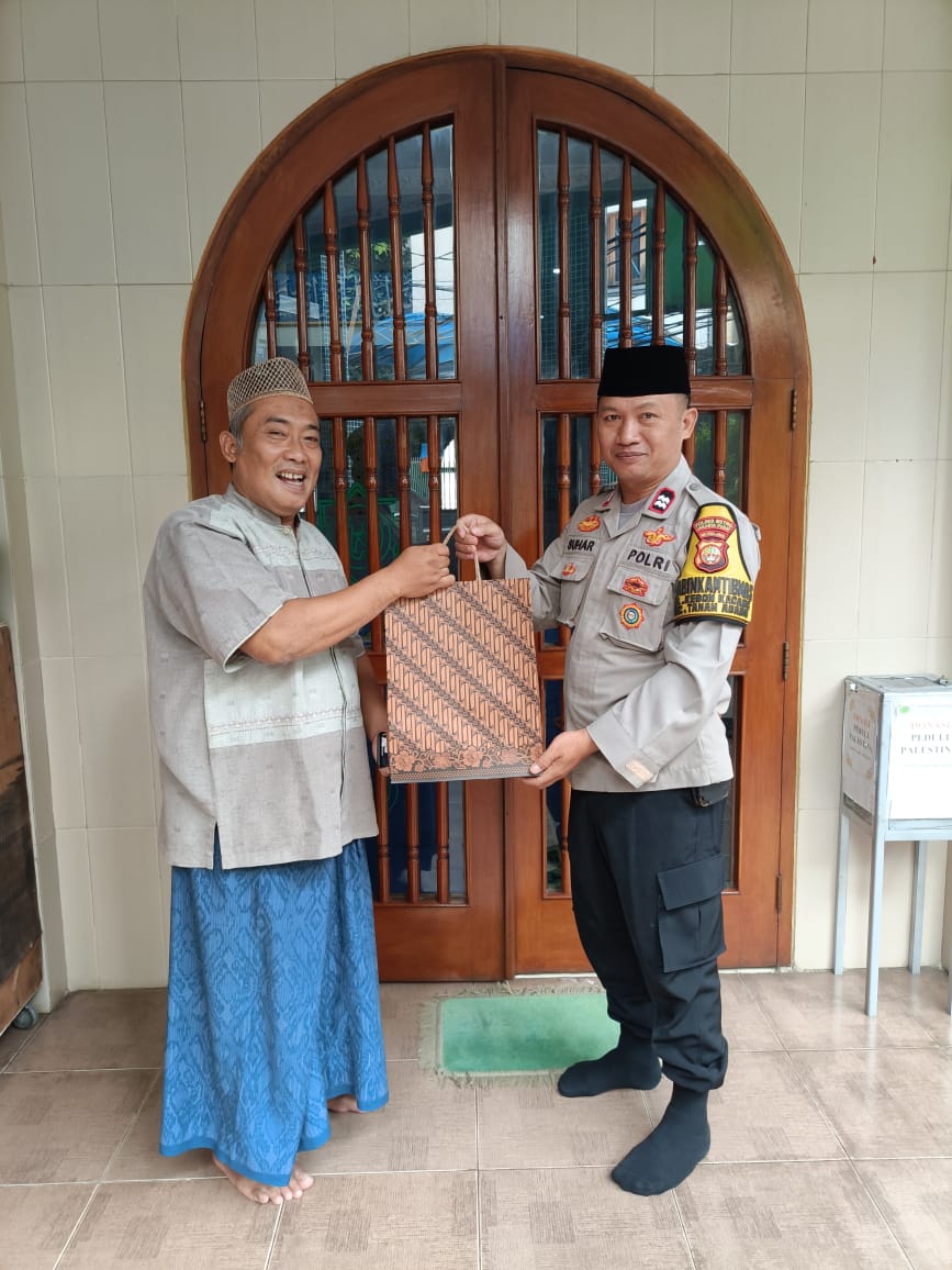 Dalam kesempatan tersebut Aiptu Suhartono memberikan sarana kontak berupa sarung kepada DKM Masjid.