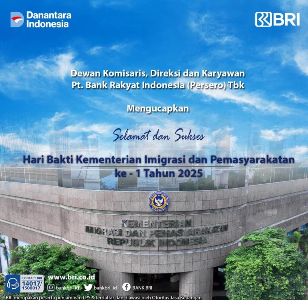 Detikdjakarta.com Tangerang, 19 November 2025 — Bank Rakyat Indonesia (BRI) melalui BRI Cabang Bandara Soekarno–Hatta menyampaikan ucapan selamat serta apresiasi atas peringatan Hari Bakti Kementerian Imigrasi dan Pemasyarakatan ke-1 tahun 2025. Momentum ini menjadi penanda penting atas dedikasi dan kinerja jajaran Imigrasi serta Pemasyarakatan dalam memberikan pelayanan terbaik kepada masyarakat.