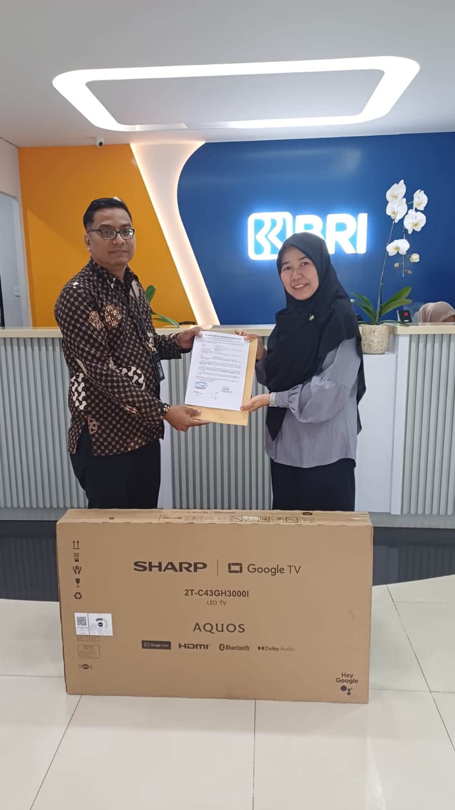 Penyerahan hadiah dilakukan secara langsung di Kantor Cabang BRI Bandara Soetta oleh perwakilan manajemen cabang, Bapak Anton Darmawan. Suasana penyerahan berlangsung hangat serta penuh kebahagiaan.