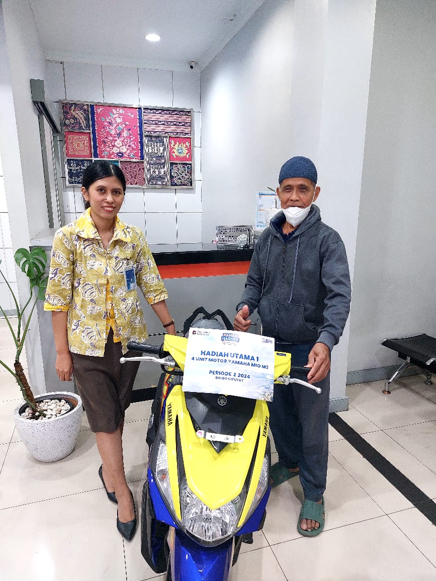 Detikdjakarta.com Ciputat, TANGSEL – 29 Juli 2025 – Sebagai bentuk apresiasi kepada nasabah setia, PT Bank Rakyat Indonesia (Persero) Tbk Kantor Cabang Ciputat menyerahkan hadiah utama berupa 1 unit sepeda motor Yamaha Mio M3 kepada salah satu pemenang program Panen Hadiah Simpedes (PHS) Periode 2 Tahun 2024. Penyerahan hadiah dilakukan langsung di Kantor BRI Branch Office Ciputat dengan suasana penuh kebahagiaan dan kehangatan.