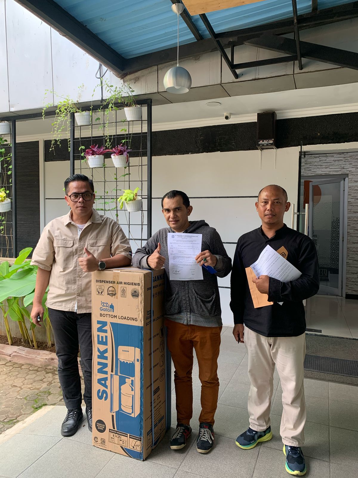 Hadiah berupa 1 unit dispenser diserahkan langsung kepada pemenang yang beruntung melalui prosesi sederhana namun penuh kehangatan.