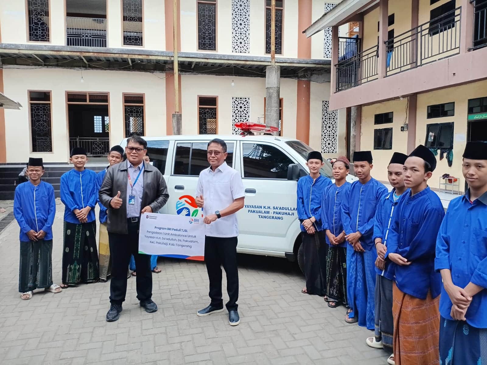 Detikdjakarta.com Tangerang – Dalam wujud nyata kepedulian terhadap masyarakat melalui program BRI Peduli TJSL, Bank BRI Kantor Cabang Tangerang Merdeka kembali menyalurkan bantuan fasilitas kesehatan kepada lingkungan pesantren dan yayasan pendidikan. Pada kesempatan ini, satu unit ambulans resmi diserahkan kepada Yayasan KH. Sa’adullah Pakuhaji, Kabupaten Tangerang.