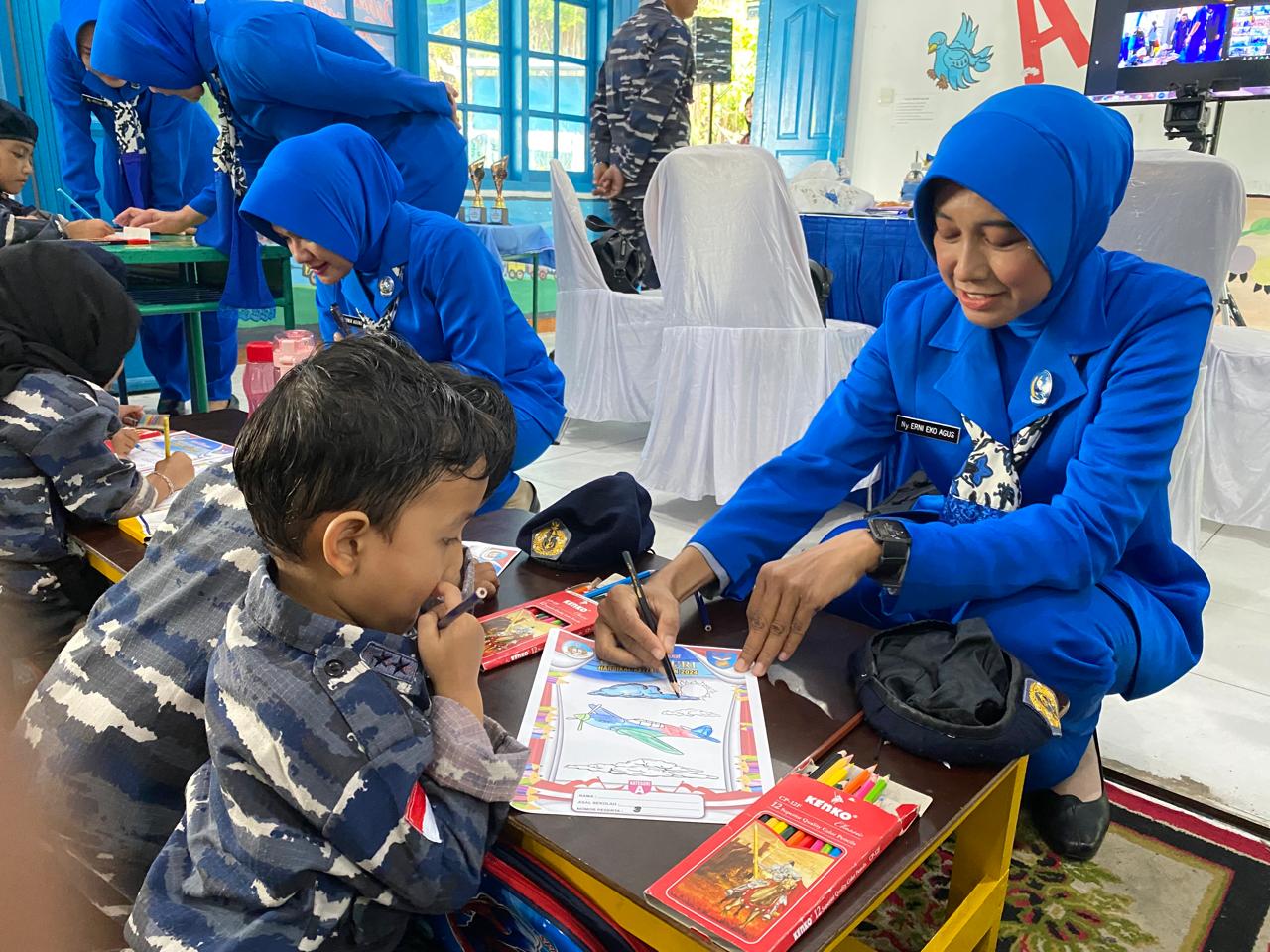 Detikdjakarta.com TNI AL, Bintan,- Komandan Lanal Bintan Letkol Laut (P) Eko Agus Susanto, S.E., M.M., beserta Ketua Cabang 5 Korcab IV DJA I Ny. Erni Eko Agus dalam rangka mendampingi Danlantamal IV Laksamana Pertama TNI Tjatur Soniarto, CHRMP., M.Tr.Opsla., beserta Ketua Korcab IV DJA I Ny. Erni Tjatur Soniarto, mengunjungi Yayasan Hang Tuah di TK Hang Tuah 03 Perwakilan Batam di Belakang Padang, dalam acara Vidcon Rekor Muri Lomba Mewarnai secara serentak dalam rangka Hardikal Ke-78 Tahun 2024, Senin (13/05/2024).
