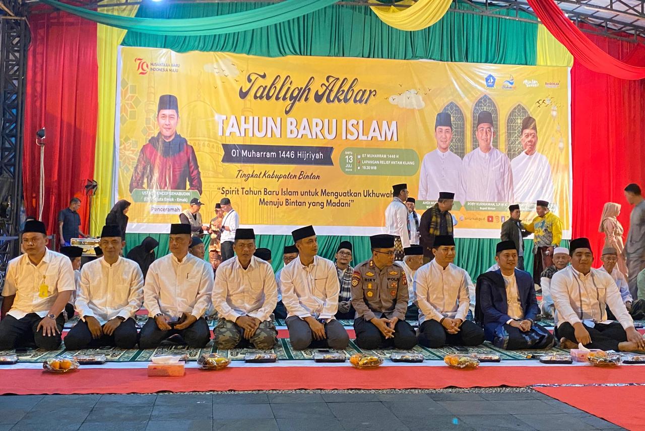 Kegiatan yang dihadiri oleh ribuan masyarakat Bintan tersebut mengambil tema “Spirit Tahun Baru Islam Untuk Menguatkan Ukhuwah Menuju Bintan Madani”. Kegiatan diawali dengan pelaksanaan Pawai Obor, dilanjutkan dengan Pembukaan oleh MC, Pembacaan Ayat Suci Alquran, kemudian Penyerahan santunan kepada Imam Masjid, Pengurus Madrasah, Kaum Dhuafa dan Anak Yatim Piatu secara simbolis, penyerahan hadiah Pawai Akbar Peringatan Tahun Baru Islam 1446 Hijriyah dan Sambutan Bupati Bintan, acara diakhiri dengan Ceramah Ustadz Encep Sehabuddin.