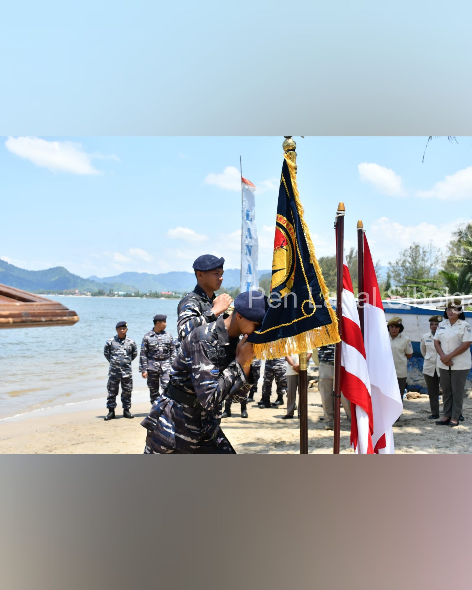 Upacara diakhiri dengan penyiraman air bunga dan ucapan selamat bergabung oleh Danlanal Sibolga beserta para prajurit sebagai tanda diakhirinya masa orientasi 7 orang Bintara dan Tamtama tersebut.