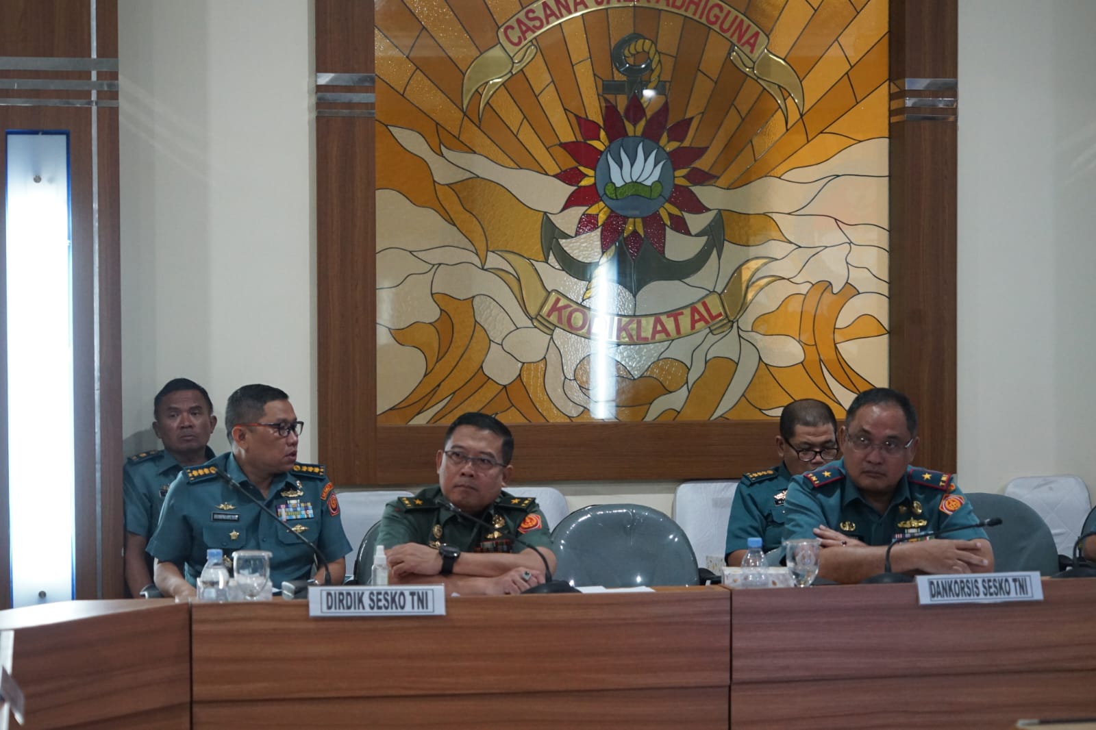 Detikdjakarta.com PENHUMAS-SESKO TNI,- Komandan Sesko TNI Marsda TNI Arif Widianto, S.A.B., M.Tr (Han)., CHRMP., didampingi Wadan Sesko TNI Mayjen TNI Budi Eko Mulyono, S,.Sos., M.M., memimpin Rakor III PKB Kejuangan Sesko TNI, Sespimti Polri, Sesko Angkatan dan Sespimmen Polri, bertempat di Ruang Rapat Utama Samadikun Seskoal, Cipulir Jakarta, Selasa (30/4/2024).
