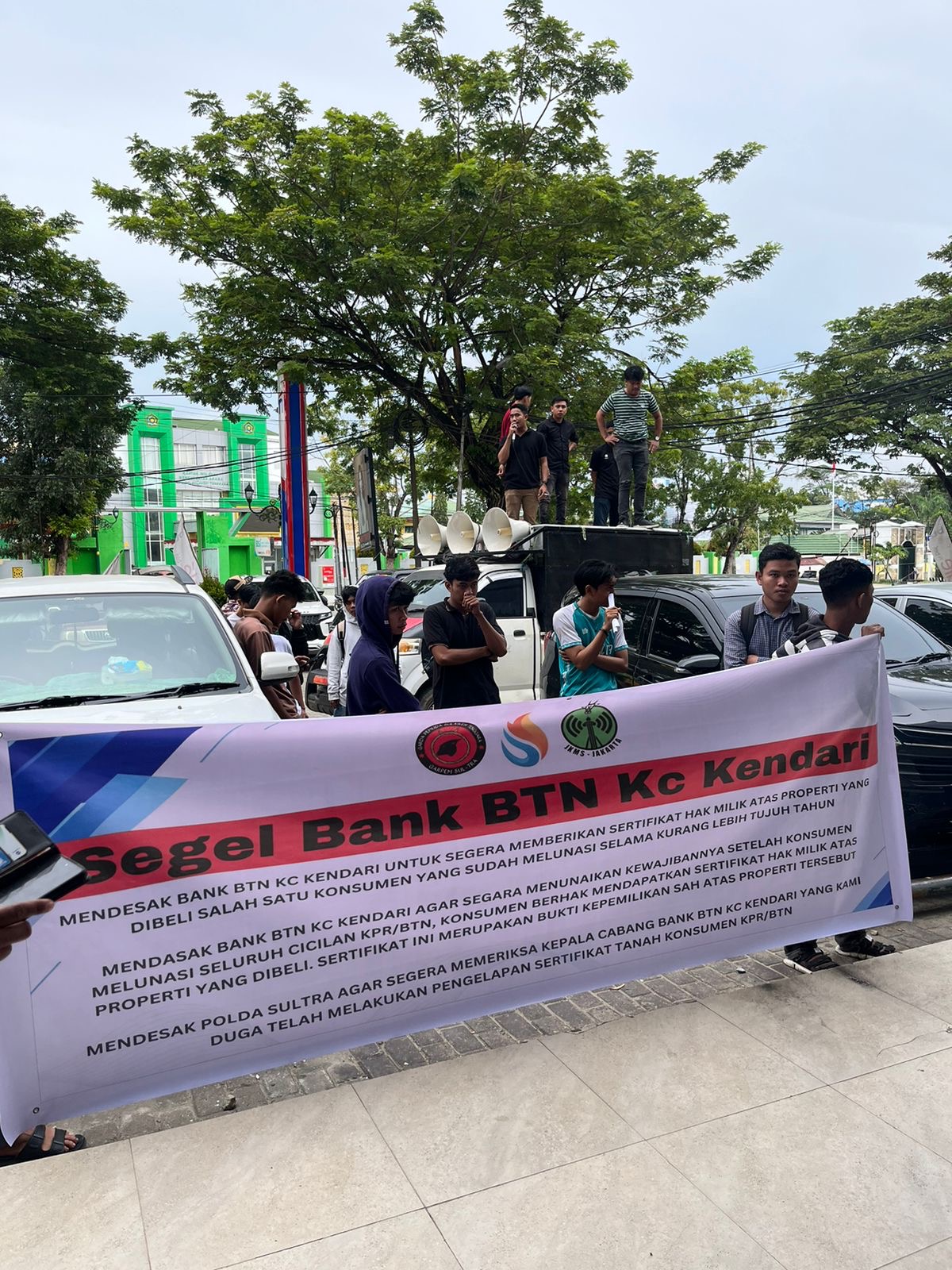 Aksi yang dilakukan diakibatkan adanya Salah satu konsumen Inisial “AE” di salah satu perumahan BTN di kabupaten Muna Kota Raha Sulawesi tenggara di tahan Sertifikat Nya Oleh pihak Bank BTN Kc Kota Kendari.