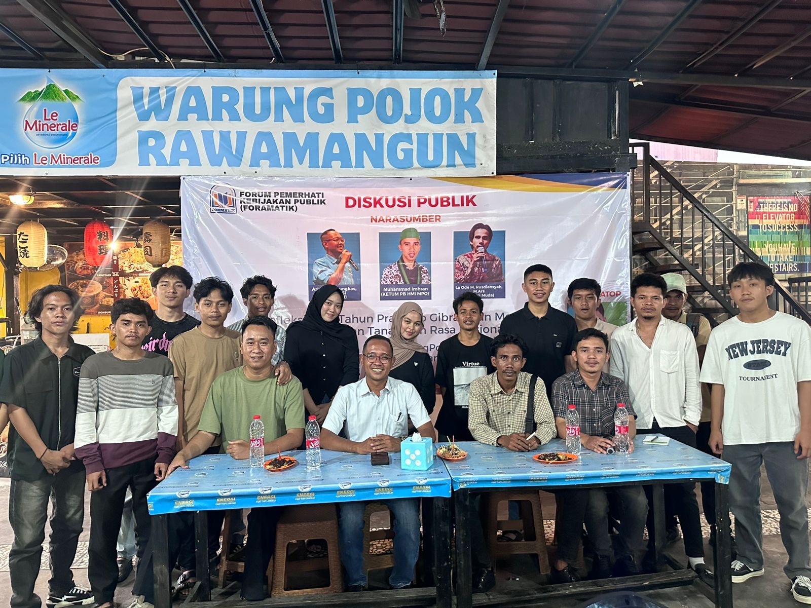 Untuk diketahui diskusi publik ini di gagas oleh Forum Pemerhati kebijakan Publik (Formatik) dengan mengusung tema””Refleksi Satu Tahun Prabowo Gibran dan Momentum Hari Pahlawan Tanamkan Rasa Nasionalisme” Diskusi di ikuti oleh puluhan mahasiswa dan pemuda yang di gelar di warung pojok rawamangun