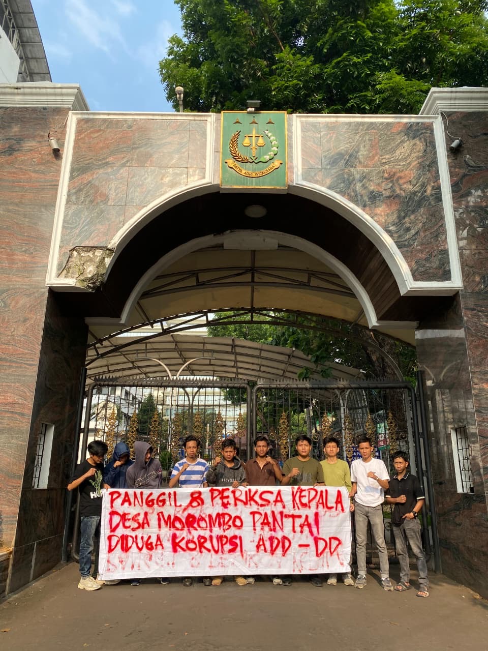 Aksi ini digelar untuk mendesak aparat penegak hukum segera menindaklanjuti dugaan penyalahgunaan Dana Desa (DD) dan Alokasi Dana Desa (ADD) oleh Kepala Desa Morombo Pantai, Kecamatan Lasolo, Kabupaten Konawe Utara.