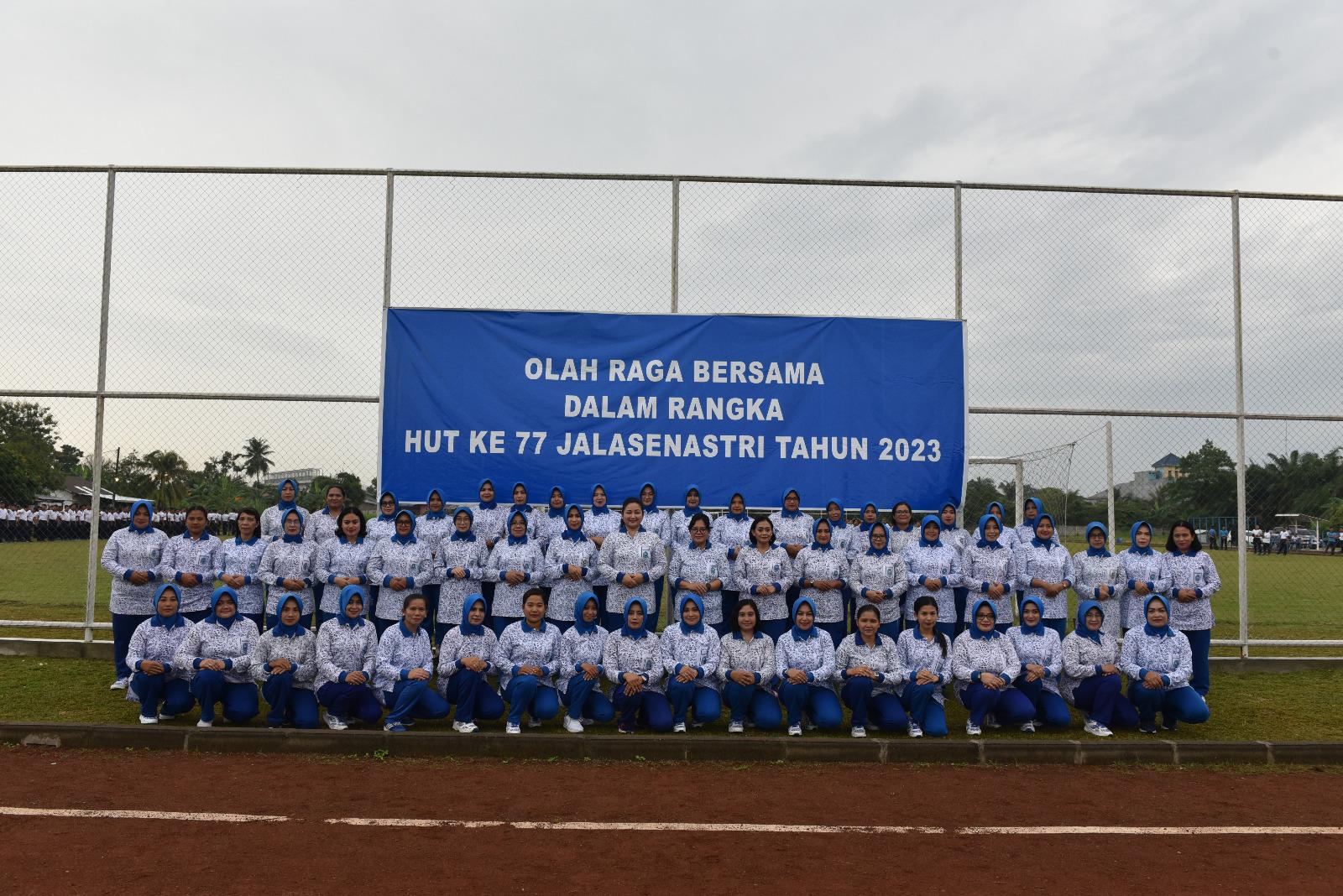 Detikdjakarta-TNI AL, Belawan,- Jalasenastri Korcab I DJA I melaksanakan olahraga bersama dalam rangka menyambut HUT Ke-77 Jalasenastri Tahun 2023, bertempat di Lapangan Sepak Bola Komplek Perumahan TNI AL Barakuda, Jalan Aluminium Raya, Medan, Sumatera Utara, Jumat (14/7/2023).