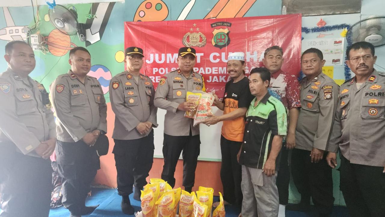 Jumat Curhat dan Jumat Berkah Polsek Pademangan Bagikan Sembako di Rumah Belajar Kampung Muka RT 009/004 Kelurahan Ancol.(*/Jaya)