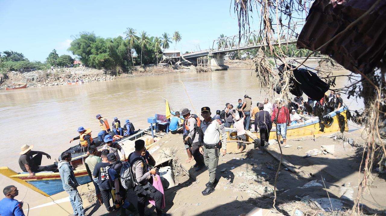 Dari jembatan yang terputus di sisi Bireuen, Kapolda Aceh menaiki perahu karet menuju sisi Kecamatan Kutablang yang menjadi salah satu titik tertahannya masyarakat yang hendak menuju arah Banda Aceh akibat jembatan penghubung di jalan nasional itu terputus akibat banjir.