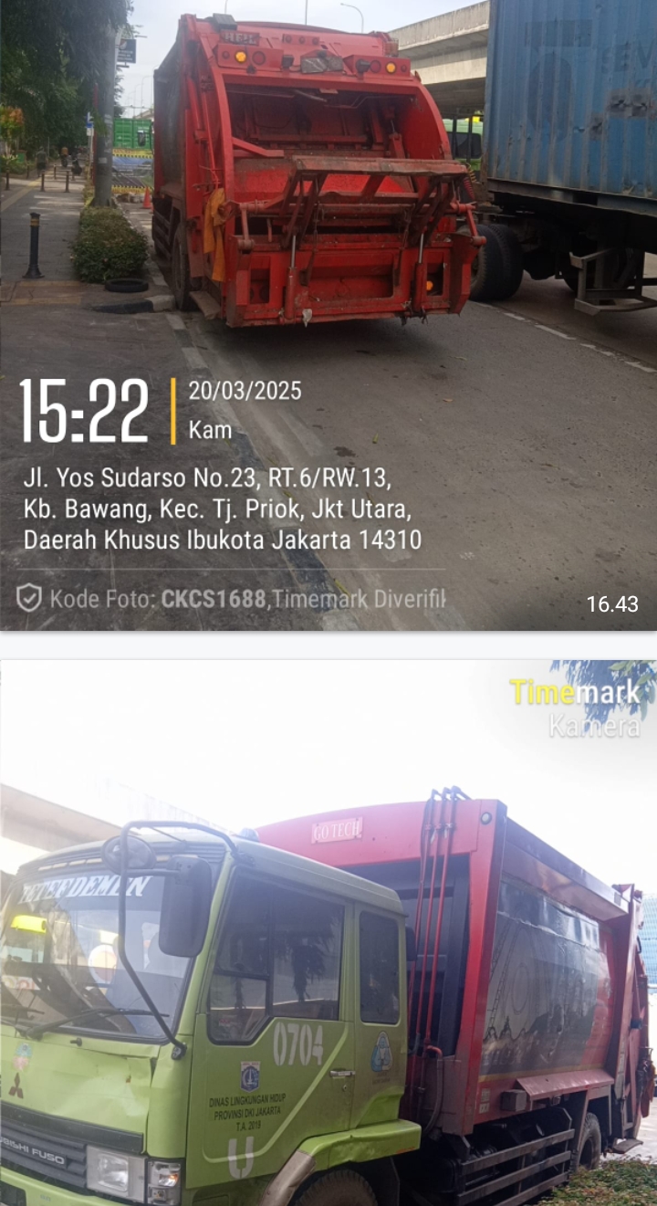 Ironisnya lagi kendaraan operasional dengan no pintu U 0704 dengan Nopol B 9242 PJA masih saja melakukan operasi untuk mengangkut sampah bahkan parkir kendaraan di pinggir jalan depan kantor kecamatan Tanjung Priok yang mengakibatkan arus jalan Yos Sudarso menjadi macet.