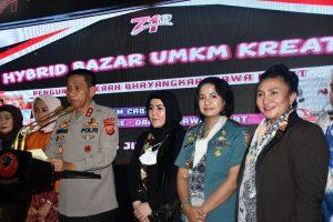 Detikdjakarta-TNI AL, Bandung,- Komandan Lanal Bandung Kolonel Laut (KH/W) Dr. Renny Setiowati, S.T., M.Sc., M.Tr. Hanla., beserta Personel dan Pengurus Jalasenantri Cabang 9 Korcab III DJA I menghadiri kegiatan Bazar UMKM Bhayangari dalam rangka rangkaian peringatan Hari Bhayangkara ke-77 Tahun 2023, bertempat di Aula Muryono Polda Jabar Gede Bage, Rabu (5/7/2023).
