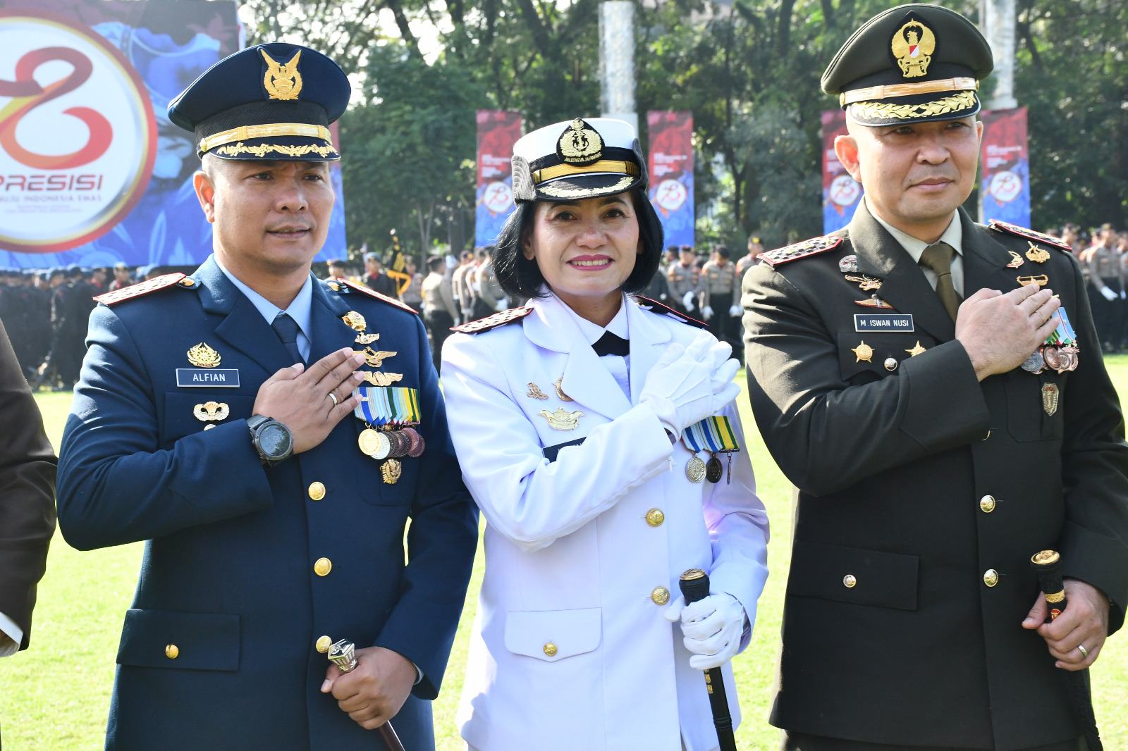 Detikdjakarta.com TNI AL, Bandung,- Komandan Lanal Bandung Kolonel Laut (KH/W) Dr. Renny Setiowati, S.T., M.Sc., M.Tr.Hanla., beserta Unsur Forum Komunikasi Daerah (FKPD) Provinsi Jawa Barat menghadiri rangkaian Upacara Hari Bhayangkara Ke-78 Tahun 2024, bertindak selaku Inspektur Upacara Kapolda Jabar Irjen Pol Akhmad Wiyagus, bertempat di Lapangan Gasibu, Jalan Diponegoro No. 2 Bandung, Senin (01/07/2024).