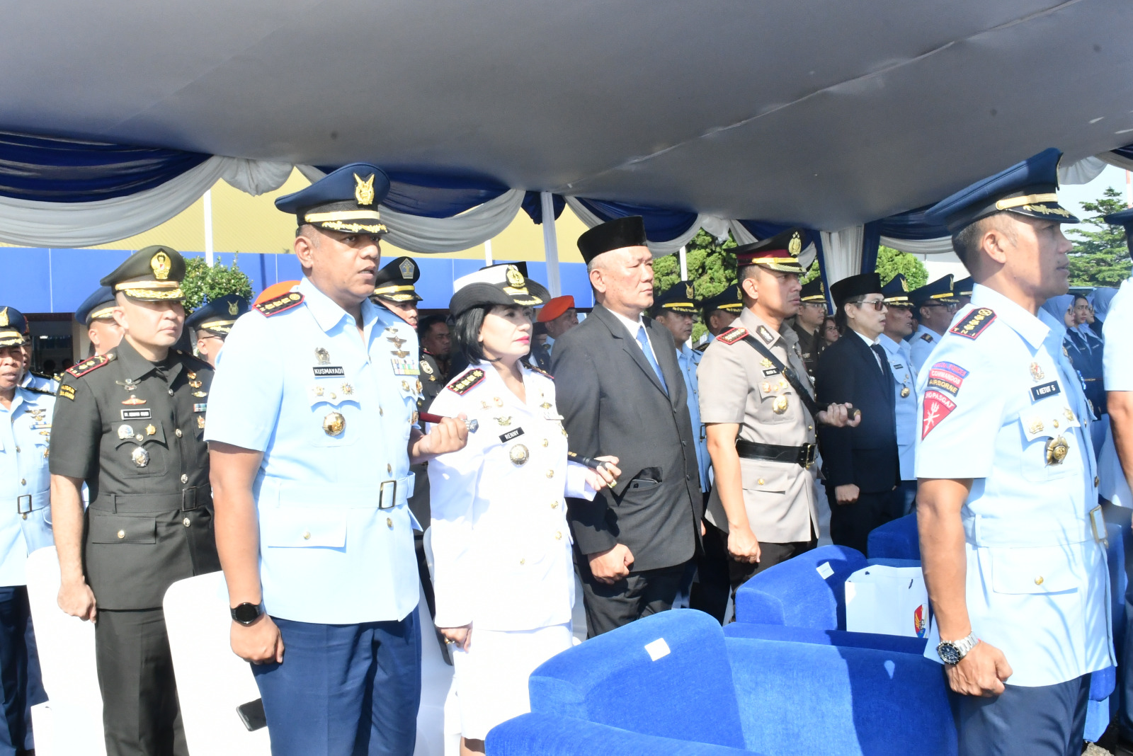 Dalam sambutannya, Inspektur Upacara membacakan amanat Panglima TNI Jenderal TNI Agus Subiyanto, S.E., M.Si., menyampaikan bahwa seperti yang kita pahami bersama Pangkalan TNI Angkatan Udara Husein Sastranegara merupakan salah satu satuan pelaksana dibawah Korps Udara I yang memiliki tugas menyiapkan dan melaksanakan pembinaan serta pengoperasian seluruh satuan dalam jajarannya, serta melaksanakan pembinaan potensi kedirgantaraan dan menyelenggarakan dukungan operasi bagi satuan lainnya. Disamping itu, kedudukan Pangkalan Udara mempunyai nilai yang penting dan strategis baik dari aspek geografis maupun dalam pembangunan wilayah serta kepentingan pertahanan negara dengan posisi yang strategis ini, maka seluruh personel TNI AU dituntut untuk memiliki profesionalisme, kepekaan serta komitmen yang tinggi.