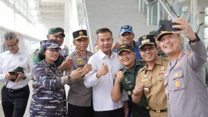 Komandan Lanal Bandung turut hadir bersama unsur Forkopimda Provinsi Jawa Barat untuk menyambut rombongan Presiden Jokowi saat melakukan peninjauan di Depo Kereta Cepat Tegalluar.
