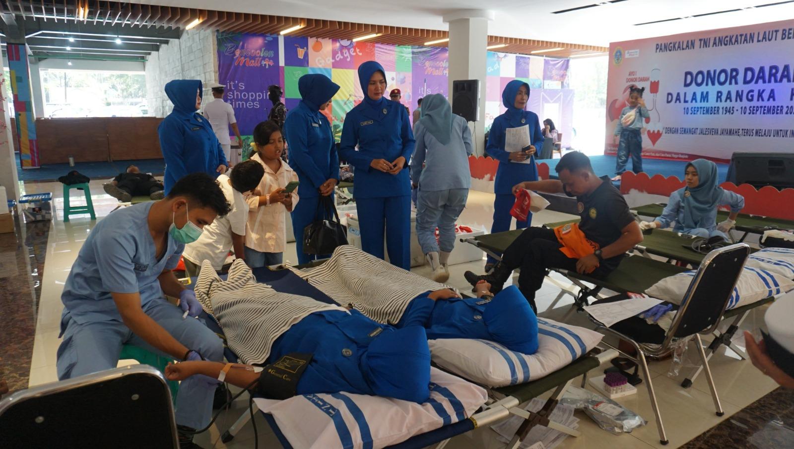 Detikdjakarta TNI AL, Bengkulu,- Dalam rangka Hari Ulang Tahun TNI Angkatan Laut Ke-78, TNI AL melalui Pangkalan TNI Angkatan Laut (Lanal) Bengkulu laksanakan Donor Darah sekaligus mensosialisasikan Penerimaan TNI AL kepada para pengunjung di Bencoolen Indah Mall (BIM) Kota Bengkulu, Jalan Pariwisata No.1, Kelurahan Penurunan, Kecamatan Ratu Samban Kota Bengkulu, Rabu (13/09/2023).