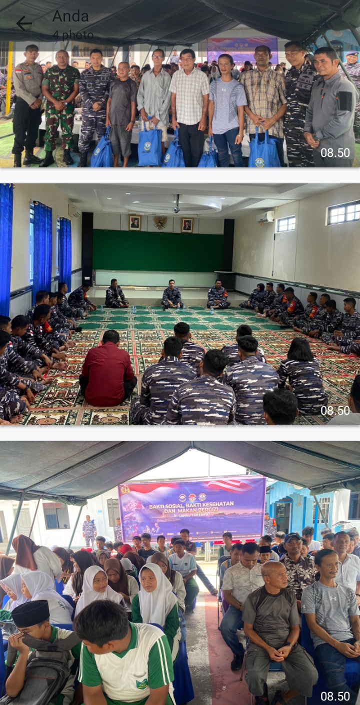 Dari Lanal Tarempa di wilayah Kabupaten Kepulauan Anambas, Komandan Lanal Tarempa Letkol Laut (P) Ari Sukmana, S.E., M.Tr.Opsla., memimpin langsung pelaksanaan Makan Bergizi Bersama yang di gelar di Lapangan Napoleon, Jalan Kartini, Kelurahan Tarempa, Kecamatan Siantan, Kabupaten Kepulauan Anambas yang dilaksanakan usai mengikuti serangkaian Video Conference bersama Kasal diantaranya acara Panen Raya dan Penebaran Bibit Ikan, Kasal menyapa peserta Vicon Bakti Sosial, Bakti Kesehatan, dan Makan Bergizi Bersama yang diakhiri dengan acara foto bersama dan panggung hiburan secara terpusat diselenggarakan di Dabo Singkep.