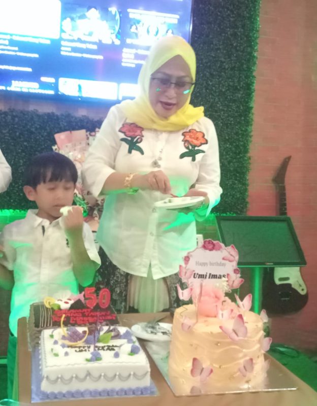 “Kegiatan dibuka dengan sambutan-sambutan, kemudian dilanjutkan dengan tiup lilin dan potong kue serta ucapan selamat seluruh undangan. Setelah itu baru makan bersama dan diakhiri acara santai,” ujar Imas.