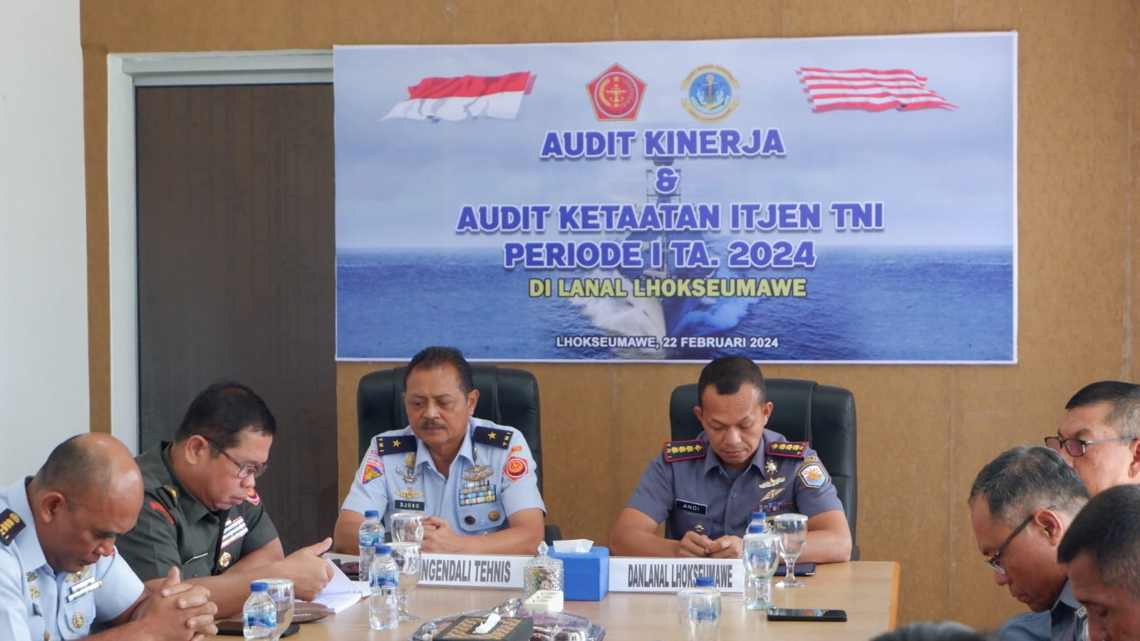 Kegiatan Entry Meeting Audit Kinerja Itjen TNI Periode I TA 2024 di Lanal Lhokseumawe dihadiri oleh Palaksa dan Perwira Staf Lanal Lhokseumawe.