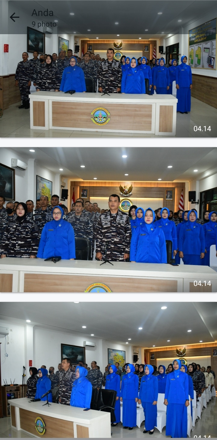 TNI AL, Bandung,- Prajurit Pangkalan TNI Angkatan Laut Bandung beserta PNS dan Pengurus Cabang 9 Korcab III DJA I mengikuti Pengarahan Pangkoarmada RI Laksamana Madya TNI Dr. Denih Hendrata, S.E., M.M., CHRMP., secara virtual, bertempat di Aula Mako Lanal Bandung, Jalan Aria Jipang No. 8 Kota Bandung, Senin (17/03/2025).