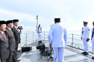 Detikdjakarta TNI AL, Belawan,- Komandan Pangkalan Utama TNI Angkatan Laut (Danlantamal) I Laksamana Pertama TNI Johanes Djanarko Wibowo memimpin Upacara Tabur Bunga dalam rangka memperingati Ke-78 Hari Pahlawan Tahun 2023 dengan tema “Semangat Pahlawan Untuk Masa Depan Bangsa dalam Memerangi Kemiskinan dan Kebodohan’’ bersama Forkopimda Provinsi Sumatera Utara, bertempat diatas Kapal Perang KRI Lemadang-632 dengan pengarungan karangan bunga di Perairan Belawan, Jumat (10/11/2023).