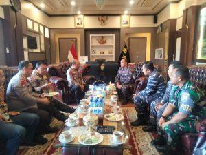 Kedatangan Danlanal Banjarmasin disambut hangat oleh Forkopimda Kalteng dan kegiatan tersebut diakhiri dengan sesi penyerahan cindera mata antar instansi dan foto bersama.