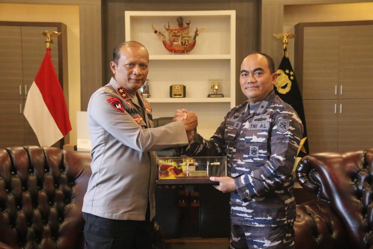 Dalam kunjungan ke Polda Kalteng, Danlanal Banjarmasin beserta rombongan diterima langsung oleh Kapolda Kalteng Irjen Pol. Drs. Nanang Avianto, M.Si., di ruang kerjanya.