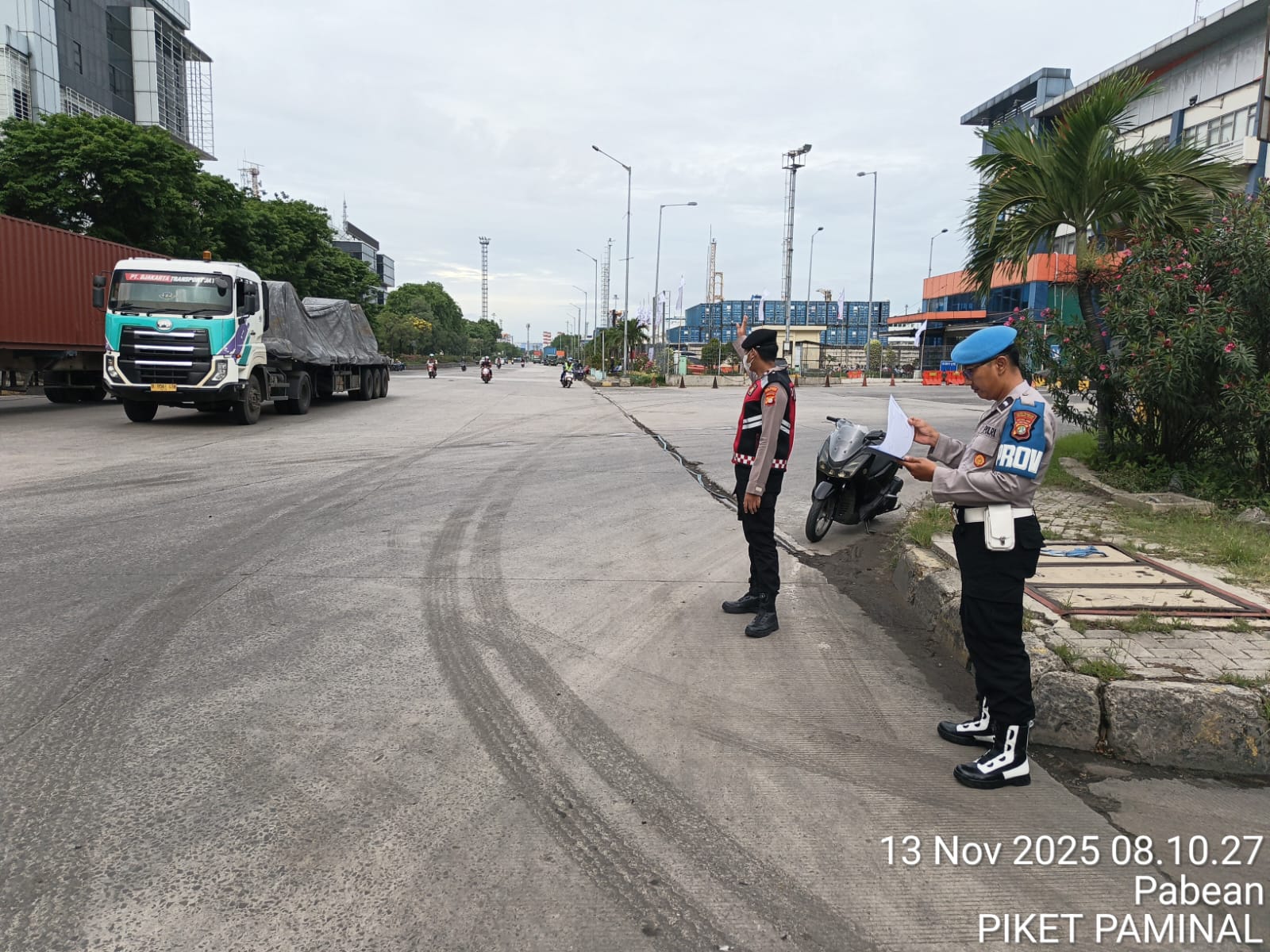 Kapolres Pelabuhan Tanjung Priok, AKBP Dr. Martuasah H. Tobing, S.I.K., M.H., bersama Kasipropam IPTU S. Sukoco, S.H., memimpin langsung pengaturan lalu lintas serta memastikan kesiapan dan kehadiran personel pada setiap titik pengaturan.