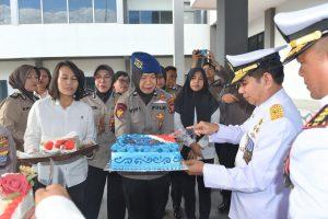 Pada kegiatan tersebut, Kapolres Belawan bersama Wadirpolairud menyampaikan ucapan Selamat Hari Jadi Ke-78 TNI Angkatan Laut, semoga semakin jaya dalam menjaga keutuhan NKRI dan semoga sinergitas TNI dan Polri selalu terjaga dalam memelihara kesatuan dan persatuan NKRI. Kehadiran Kapolres Belawan memberikan surprise ucapan Selamat Hari Jadi Ke-78 TNI Angkatan Laut dengan membawa kue ulang tahun sebagai simbol momentum yang bernilai sangat positif, ini menandakan bahwa TNI dan Polri sangat bersinergi dalam melaksanakan tugasnya disetiap wilayah, diharapkan dengan adanya pertemuan ini TNI dan Polri semakin solid dan juga TNI dan Polri semakin akrab dan saling kerjasama dalam pelaksanaan tugas di lapangan.
