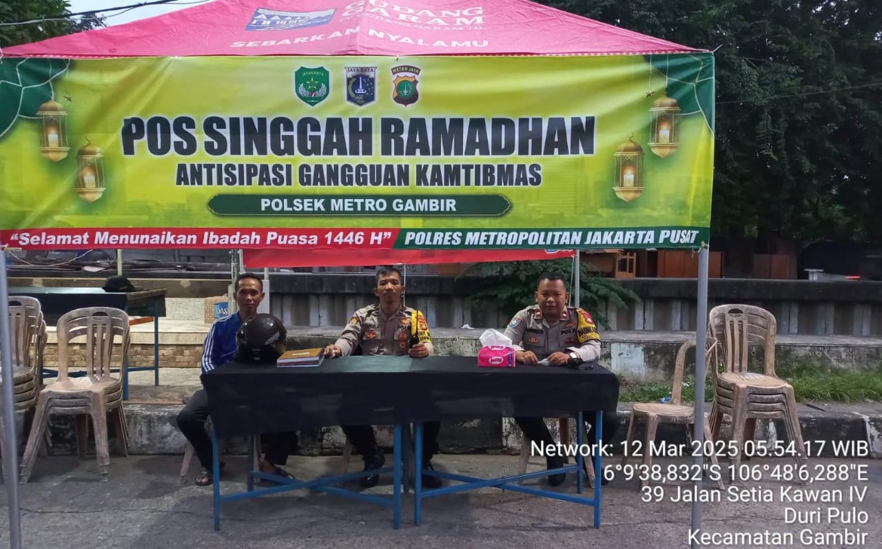 Detikdjakarta.com.Jakarta Pusat – Demi menjaga keamanan dan ketertiban masyarakat selama bulan Ramadhan, Polsek Metro Gambir menggelar pengamanan wilayah di Pos Singgah Ramadhan Roxy, Jl. Baru, Kelurahan Duripulo, Kecamatan Gambir, Jakarta Pusat, pada Kamis (13/3/2025).