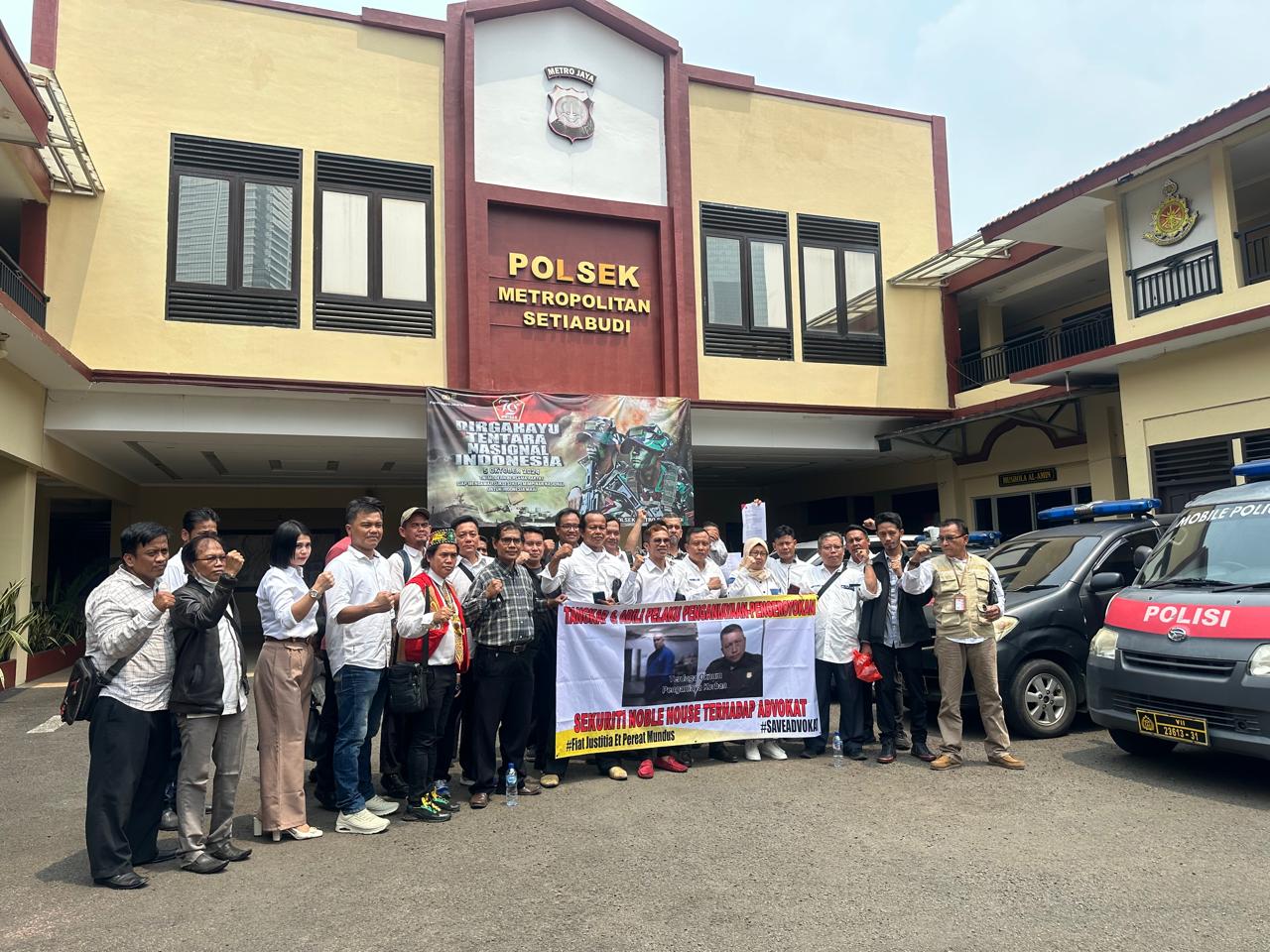 Puluhan Advokat yang tergabung dalam Solidaritas Pembela Advokat Seluruh Indonesia mendatangi Mapolsek Setiabudi di Jl. Taman Setia Budi I No.1, RT.5/RW.7, Kuningan, Karet, Kecamatan Setiabudi, Kota Jakarta Selatan, guna menyampaikan pernyataan sikap serta protes atas tindak kekerasan yang di lakukan oleh oknum Satpam Gedung Noble House kepada salah satu rekan Advokat Senin 28/10/24.