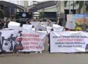 Para pendemo menuntut agar menghentikan sementara Rektor UNIMA Joseph Philip Kambey dari jabatannya agar proses hukum di PTUN pulogebang Jakarta Timur, terkait kasus perkara Plagiat Karya Ilmiah yang saat ini sedang berlangsung menjadi lancar,