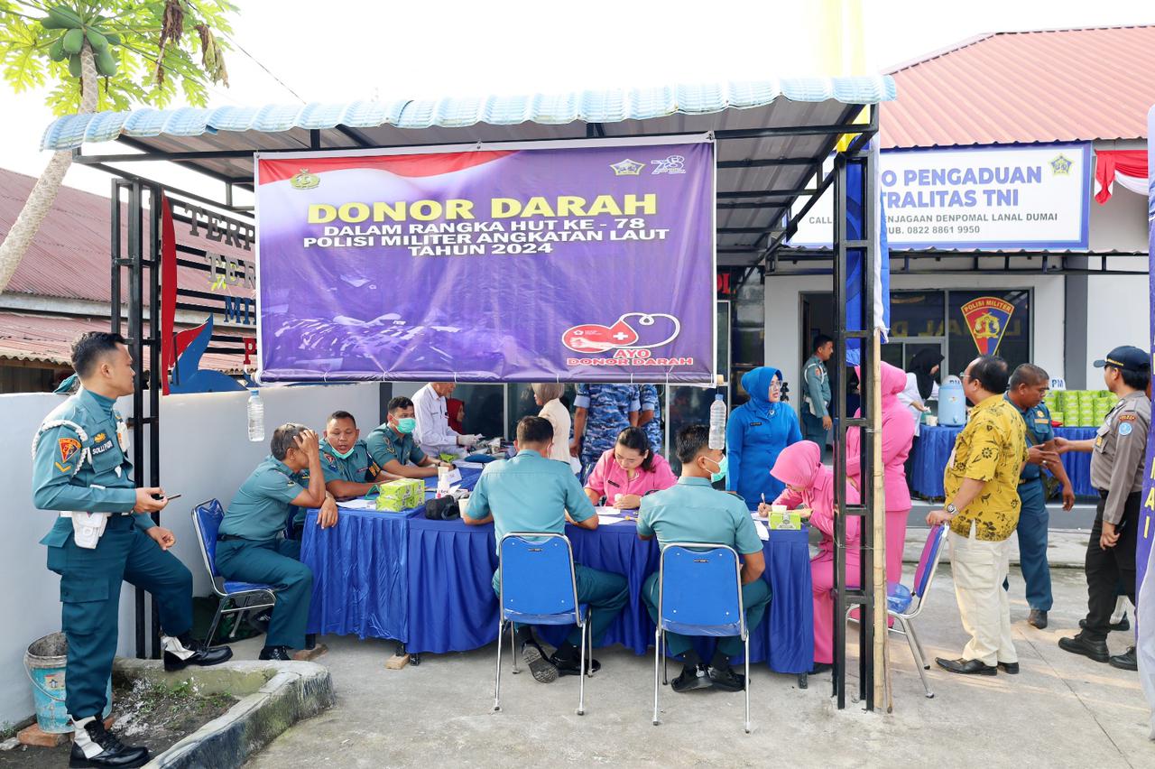 Detikdjakarta.com TNI AL, Dumai,- Detasemen Polisi Militer Angkatan Laut (Denpomal) Lanal Dumai bekerjasama dengan Balai Pengobatan Lanal Dumai dan Palang Merah Indonesia (PMI) Kota Dumai menggelar kegiatan Bakti Sosial Donor Darah dalam rangka HUT Ke-78 Polisi Militer Angkatan Laut Tahun 2024, Selasa (23/01/2024).