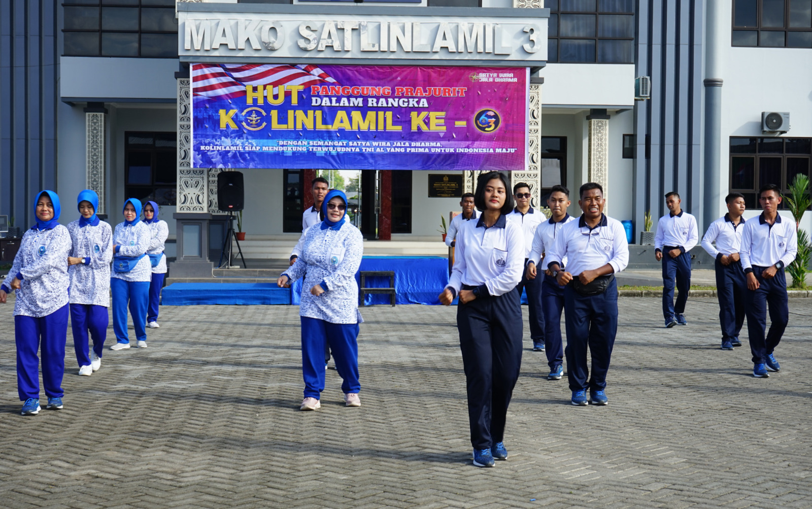 Kegiatan Panggung Prajurit diawali dengan Senam SKJ 88 dan Senam Gemu Famire, dilanjutkan jalan sehat mengelilingi Mako Satlinlamil 3, dan mengikuti sambutan Pangkolinlamil Laksamana Muda TNI Hudiarto Krisno Utomo, M.A., M.M.S., P.S.C.(Joint)., CHRMP., secara virtual yang diikuti oleh seluruh Jajaran Kolinlamil.