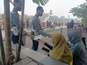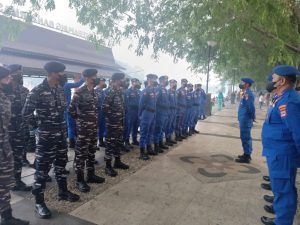 Detikdjakarta TNI AL, Banjarmasin,- Prajurit Lanal Banjarmasin bersama dengan Sat Polairud Polresta Banjarmasin melaksanakan kegiatan pembagian masker kepada pengunjung tempat wisata perairan, motoris klotok wisata, pedagang terapung dan masyarakat perairan Kota Banjarmasin, bertempat di Pasar Terapung Siring Kapten Piere Tendean Kota Banjarmasin dengan menyisir melalui darat maupun menggunakan alat Apung, Minggu (08/10/2023).