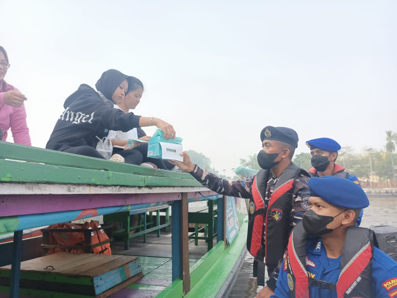 Kegiatan bagi-bagi masker tersebut dipimpin oleh Kasat Polairud Polresta Banjarmasin AKP Dading Kalbu Adie, S.T., M.M., bersama Komandan KAL Kumai II-13-51 Kapten Laut (P) Hendy Supriyono.
