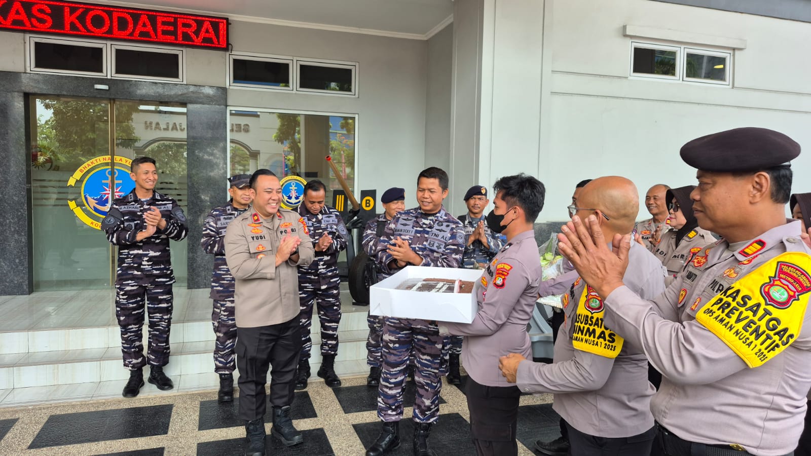 Selain penyerahan nasi tumpeng, acara juga diisi dengan sesi foto bersama antara personel Polres dan jajaran Kodaeral III, yang menandai eratnya hubungan kekeluargaan dan sinergi antara TNI dan Polri di wilayah hukum Pelabuhan Tanjung Priok.