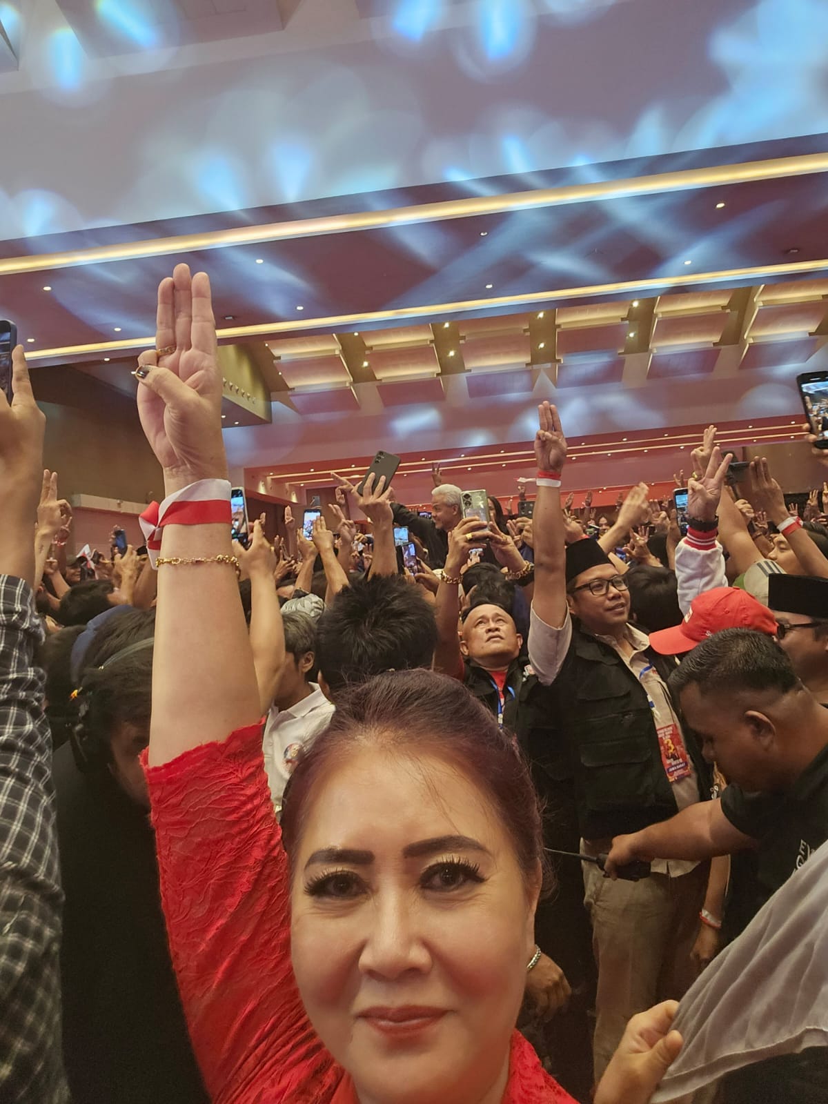 Dengan harapan kita khususnya yang dari relawan Ganjar Mahfud mengharapkan berupaya sekeras mungkin sampai pingsan kalau perlu Ganjar Mahfud harus harus menang karena mereka adalah paket yang sangat komplit yang sangat cocok untuk melanjutkan ke pemerintahan di 2024- 2029 Salam 3 jari dukung terus pemimpin yang memang cocok untuk bangsa Indonesia dan ingat datang ke TPS 5 menit mencoblos 5 tahun usia kita di dalam menghadapi Indonesia di 2024-2029 salam tiga jari salam demokrasi saya Siska rumondor ketua umum bunda milenial terima kasih mengakhiri pembicaraannya.