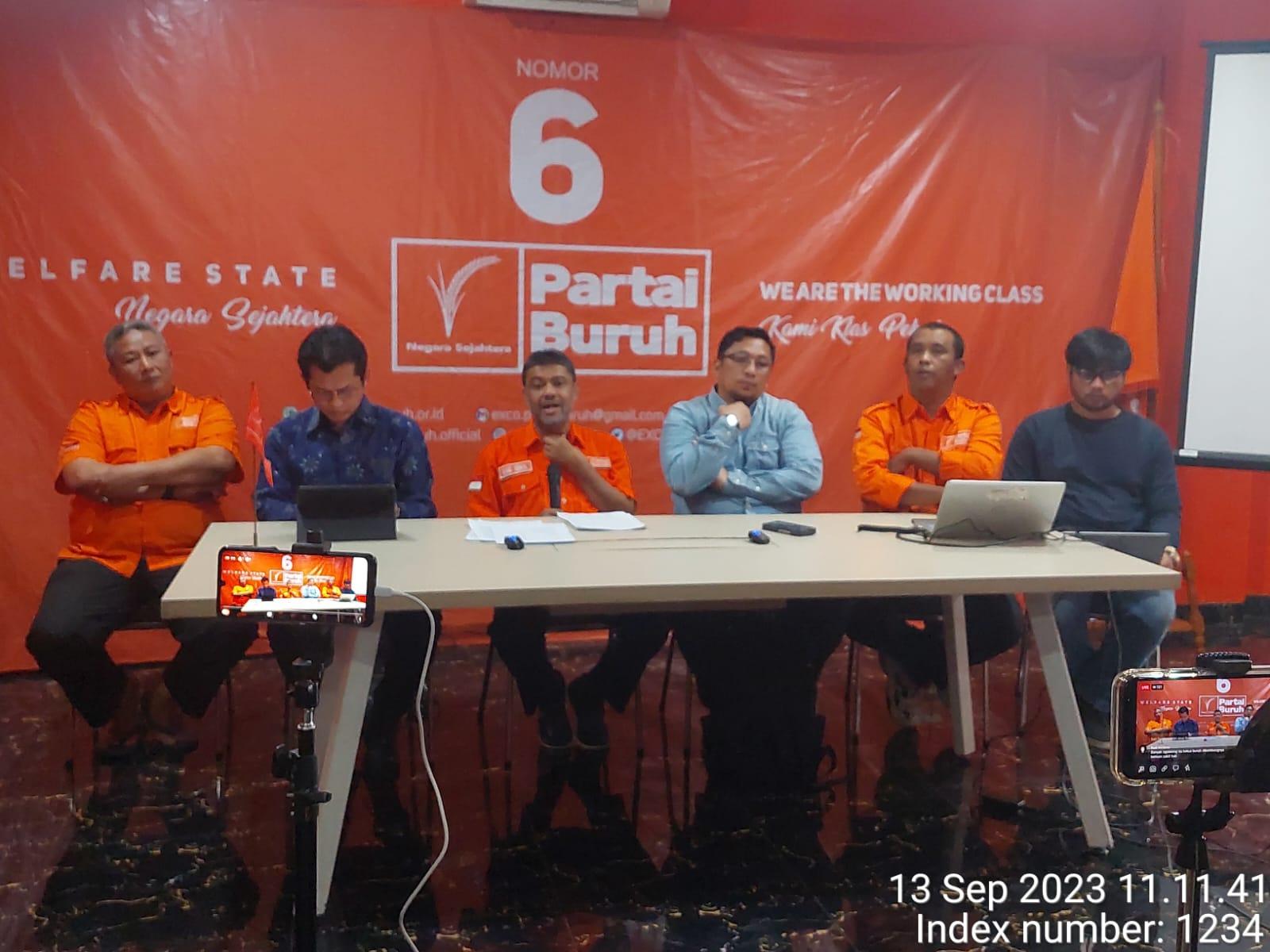 Menyikapi tahapan pendaftaran calon presiden dan calon wakil presiden periode 2024-2029, bertempat di kantor DPP Partai Buruh Indonesia, Kramatjati, Jakarta Timur, Rabu 13 September 2023.