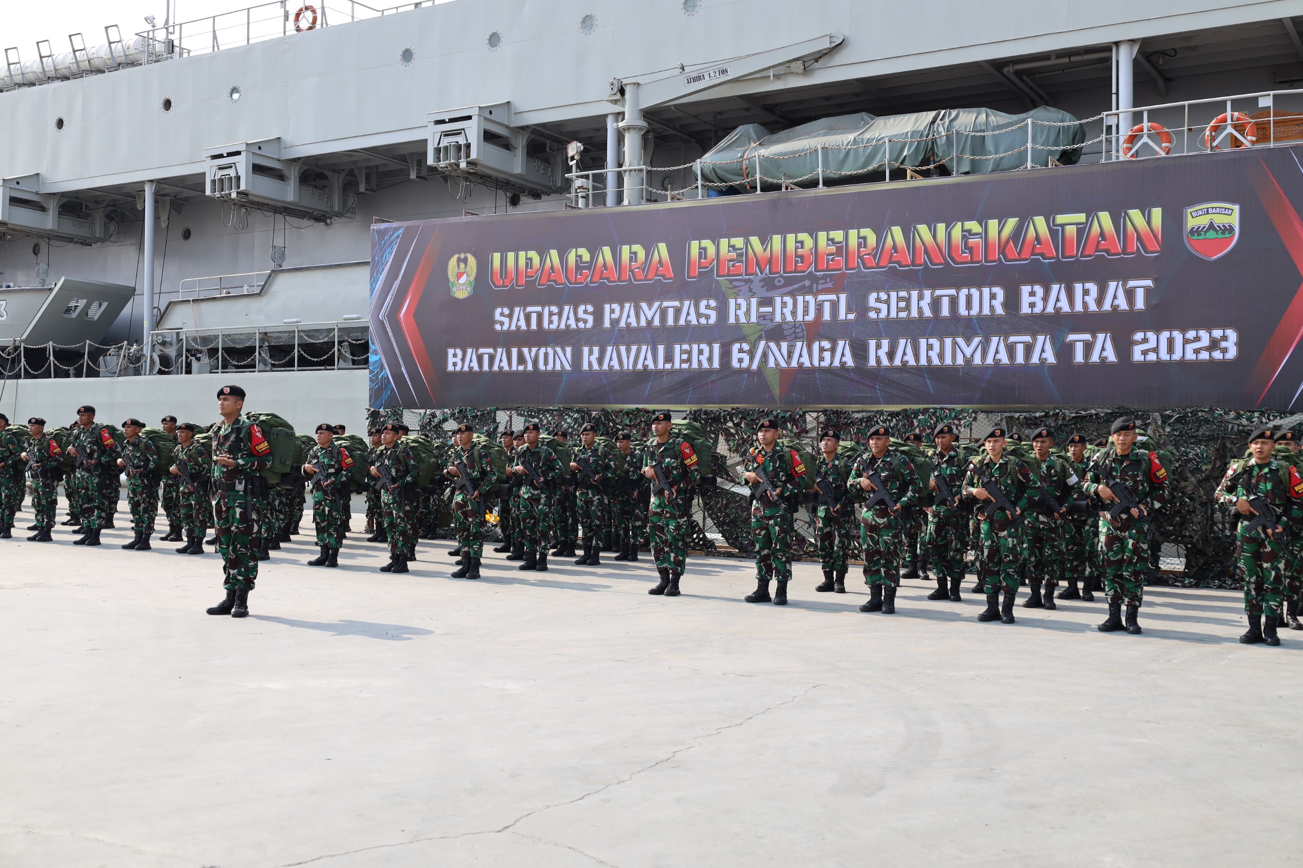 Detikdjakarta TNI AL, Belawan,- Komandan Pangkalan Utama TNI AL (DanLantamal) I Laksamana Pertama TNI Johanes Djanarko Wibowo yang diwakili Dansatrol Lantamal I Kolonel Laut (P) Sarkolim menghadiri Upacara Pemberangkatan Satgas Pamtas RI-RDTL Sektor Barat yang dipimpin oleh Pangdam I/BB Mayjend TNI Mochammad Hasan yang diwakili oleh Kasdam I BB Brigjend TNI Refrizal, bertempat di Dermaga 104 Ujung Baru Belawan, Sumatera Utara, Jumat (15/9/2023).